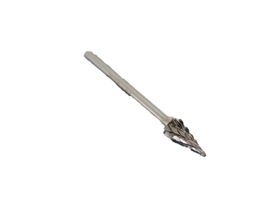 Double cut head. Made with tungsten carbide and suitable for deburring and polishing cast iron, cast steel, carbon steel, alloy steel, stainless steel and other materials up to HRC65 hardness.