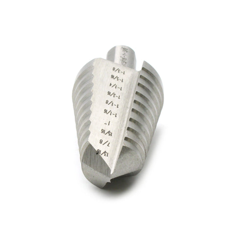 10 HOLE SIZES: 13/16" (20.64mm), 7/8" (22.22mm), 15/16" (23.81mm), 1" (25.4mm), 1-1/16", 1-1/8", 1-3/16", 1-1/4" (6.35mm), 1-5/16", 1-3/8" with 1/16" (1.59mm) increments. 1/2" shank with 3 flats to eliminate slipping.