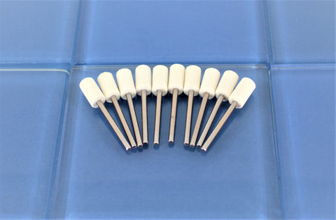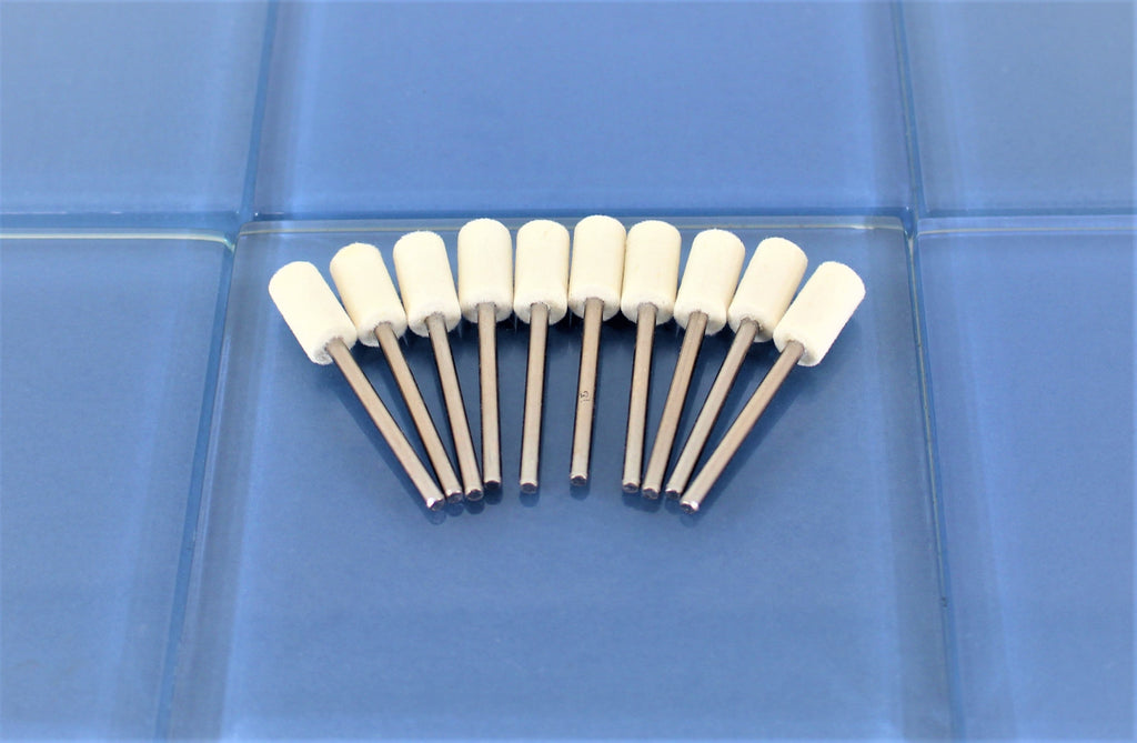 Rotary tool accessories, felt-tipped, made of top quality wool Smooth and refine surfaces by using these felt buffs to polish metal, ceramics and glass. Ideal for smoothing interior surfaces, there are 10 interchangeable pieces for the rotary grinding and polishing tool. 10 pieces cylinder head: 8mm (5/16") felt diameter, 15mm (5/8") felt length | All with 1/8" (3.175mm) Mandrel US-BASED CUSTOMER SERVICE: Available by chat, email, phone, or visit us at our customer service center in La Crosse, WI.