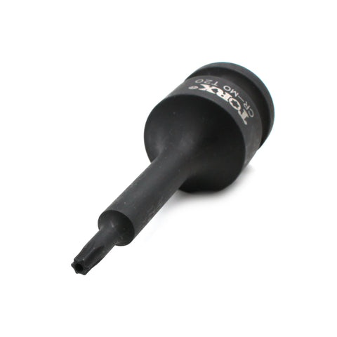 Impact Torx Star 6 point Socket Bit T20 The socket bits are Tamper proof with center hole. All are 3-1/8" (80mm) long. 1/2" (12.7mm) Sqaure Drive with drive release holes. Drop forged black chrome moly steel (CR-MO). | Industrial grade quality. Suitable for air tools and electric tools. US-BASED CUSTOMER SERVICE: Available by chat, email, phone, or visit us at our customer service center in La Crosse, WI.