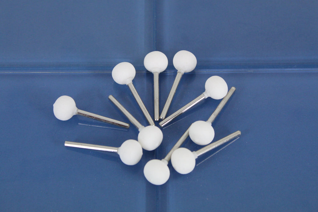 10 pieces of ceramic ball shape polishing burrs Ball shape Head: 13mm (1/2" (12.7mm)) diameter All 3mm (1/8 inch) shank. Compatible with Dremel and other rotary tools. Grind & polish stainless steel and other materials. US-BASED CUSTOMER SERVICE: Available by chat, email, phone, or visit us at our customer service center in La Crosse, WI.