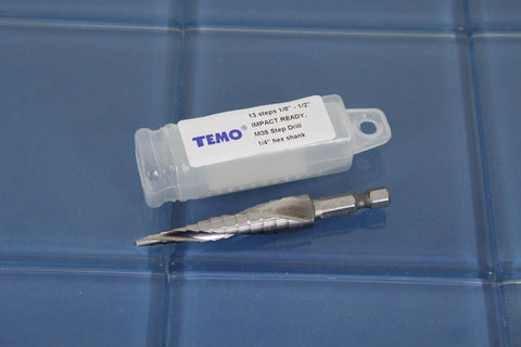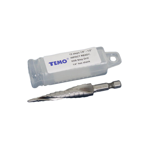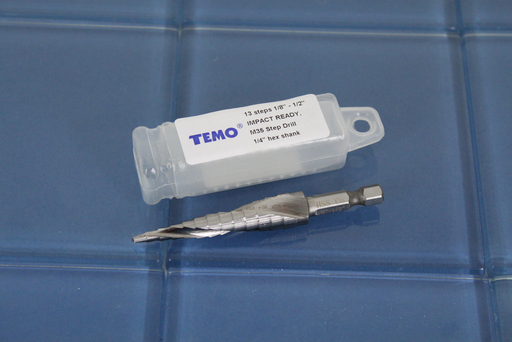 Double spiral flutes for more efficient swarf clearance; 1/4 Inch hex Shank with quick release slot to eliminate slipping; Self-starting for clean holes in thin materials; M35 cobalt HSS to cut stainless steel. The step drill bit is made with M35 cobalt. It is ideal for variety of materials from stainless steel, metal, plastic, fiberglass to wood. They also help to enlarge existing holes. M35 HSSCo is a high speed steel alloy made up of 5% cobalt. M35 is similar to M2, but with 5% cobalt added.