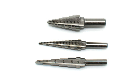 DOUBLE STRAIGHT FLUTES: These step drill bits are made with M35 cobalt. It is ideal for variety of materials from stainless steel, metal, plastic, fiberglass to wood. They also help to enlarge existing holes. M35 HSSCo is a high speed steel alloy made up of 5% cobalt. M35 is similar to M2, but with 5% cobalt added.
