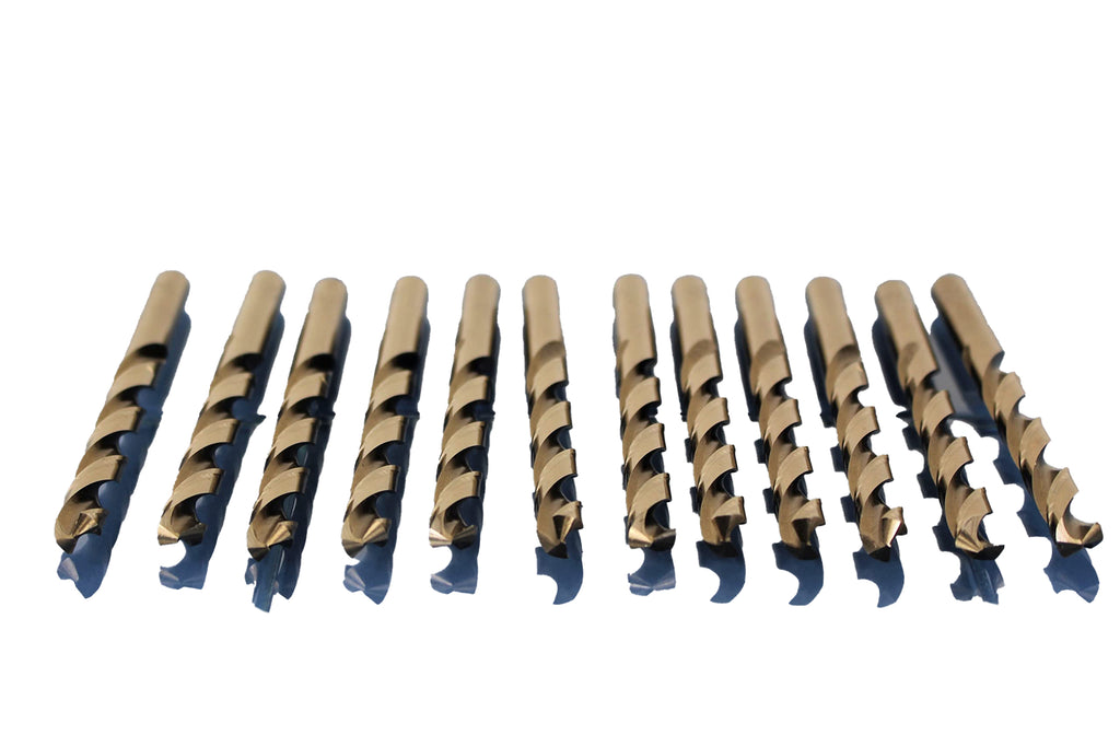 12pc 19/64 inch Cobalt 135-Degree Jobber Drill Bit 4.5 inch Length Contains: 12 High Speed Cobalt Steel Drill Bits 135 degree head reduces bit walking during use Jobber Length (4.5" total) Works in keyed and keyless drills and chucks US-BASED CUSTOMER SERVICE: Available by chat, email, phone, or visit us at our customer service center in La Crosse, WI.