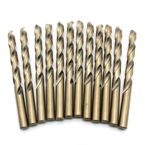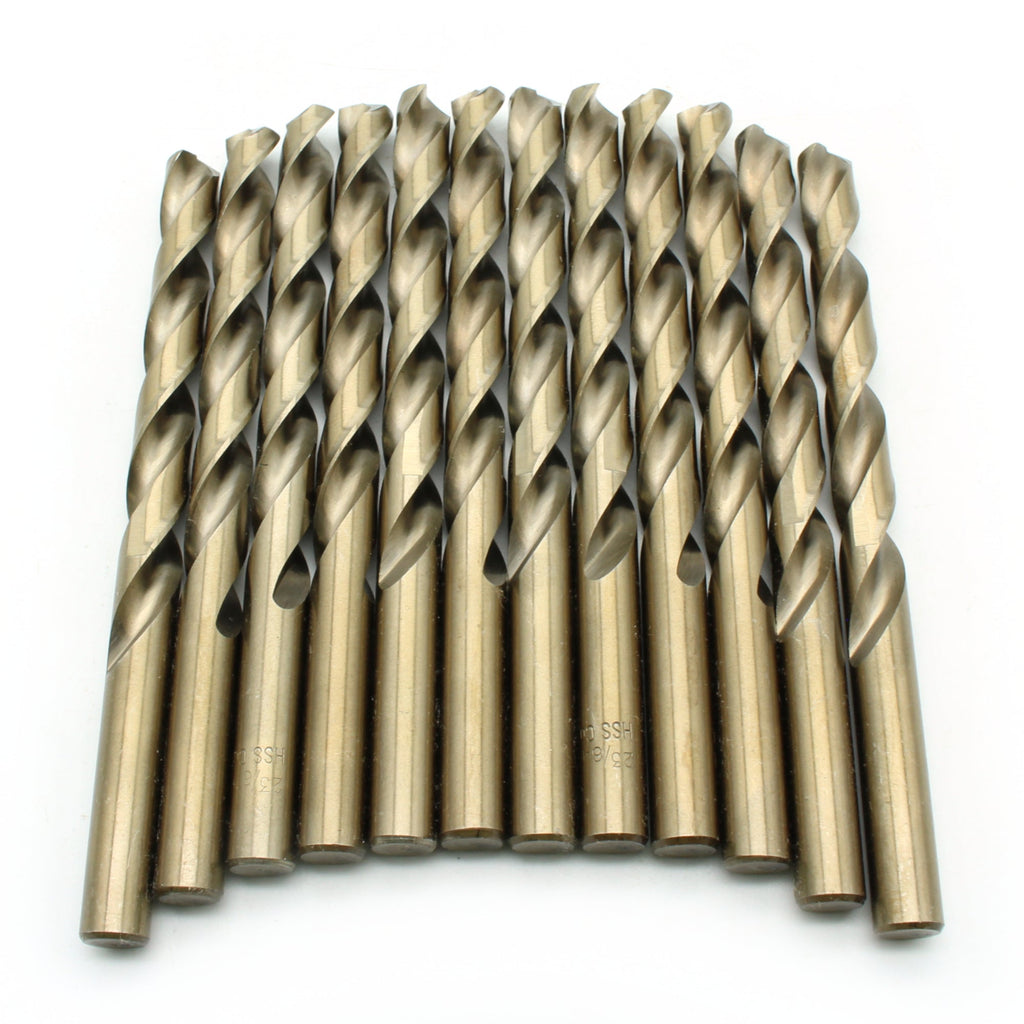 12pc 23/64 inch Cobalt Bits 135-Degree Jobber Drill Bit Set 4.83 inch Length Contains: 12 High Speed Cobalt Steel Drill Bits 135 degree head reduces bit walking during use Jobber Length (4.83" total) Works in keyed and keyless drills and chucks US-BASED CUSTOMER SERVICE: Available by chat, email, phone, or visit us at our customer service center in La Crosse, WI.
