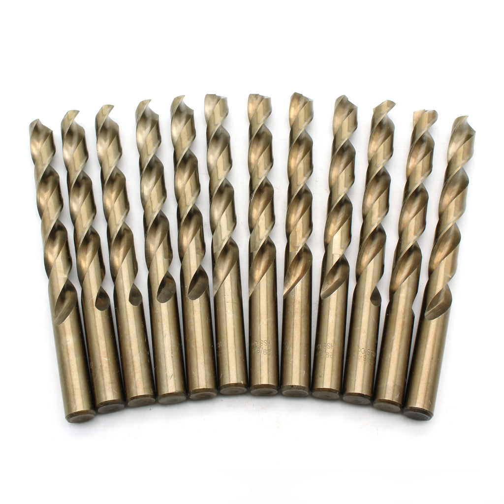 12pc 29/64 inch Cobalt 135-Degree Jobber Drill Bit 5.5 inch Length Contains: 12 High Speed Cobalt Steel Drill Bits 135 degree head reduces bit walking during use Jobber Length (5.5" total) Works in keyed and keyless drills and chucks US-BASED CUSTOMER SERVICE: Available by chat, email, phone, or visit us at our customer service center in La Crosse, WI.