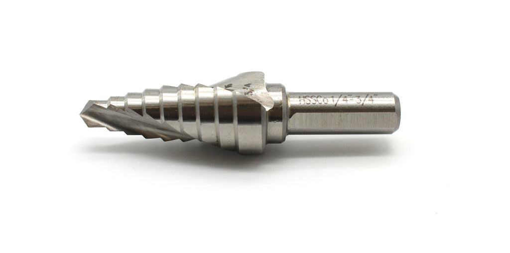 Double spiral flutes for more efficient swarf clearance; 1/4 Inch hex Shank with quick release slot to eliminate slipping; Self-starting for clean holes in thin materials; M35 cobalt HSS to cut stainless steel. The step drill bit is made with M35 cobalt. It is ideal for variety of materials from stainless steel, metal, plastic, fiberglass to wood. They also help to enlarge existing holes. M35 HSSCo is a high speed steel alloy made up of 5% cobalt. M35 is similar to M2, but with 5% cobalt added.