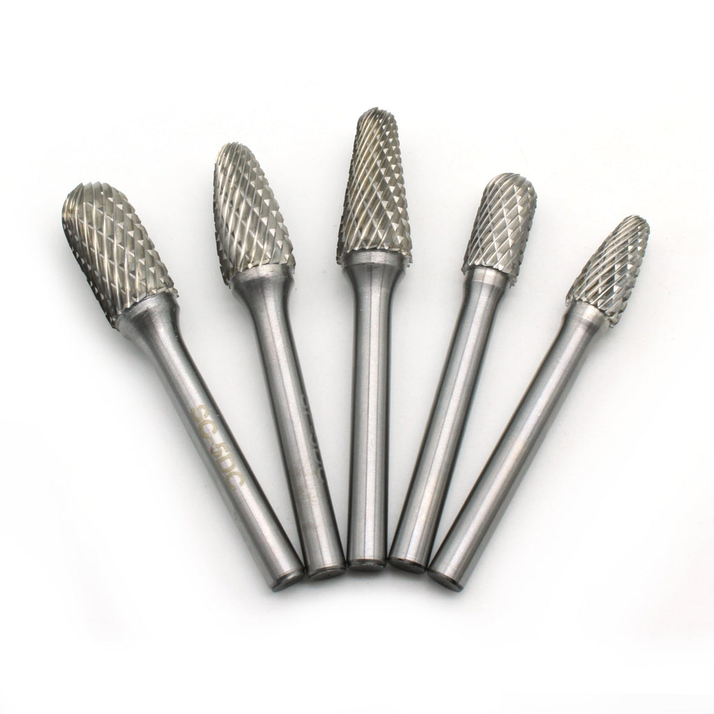 5 pc TUNGSTEN Double Cut CARBIDE ROTARY BURR TOOL SET 1/4" (6.35mm) SHANK