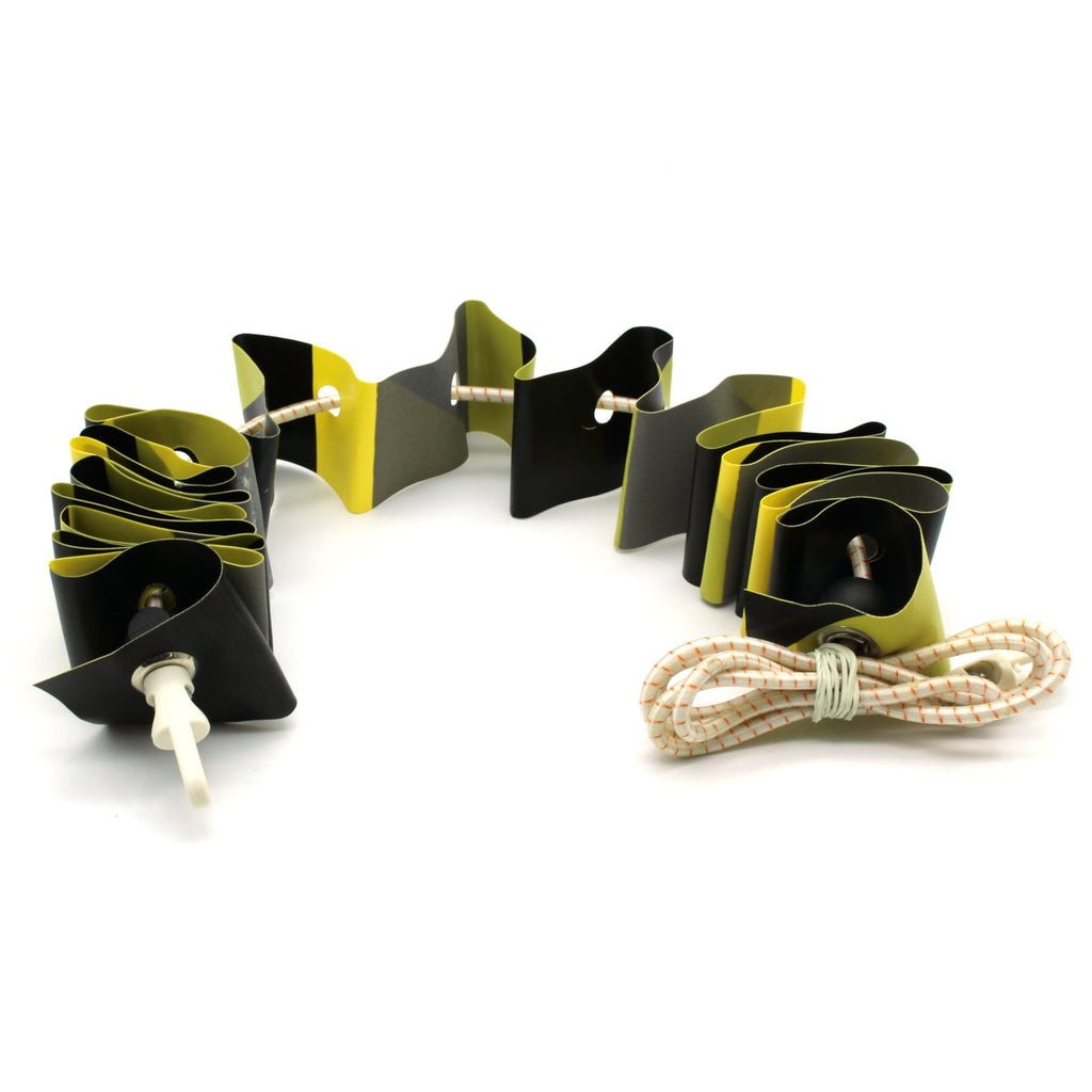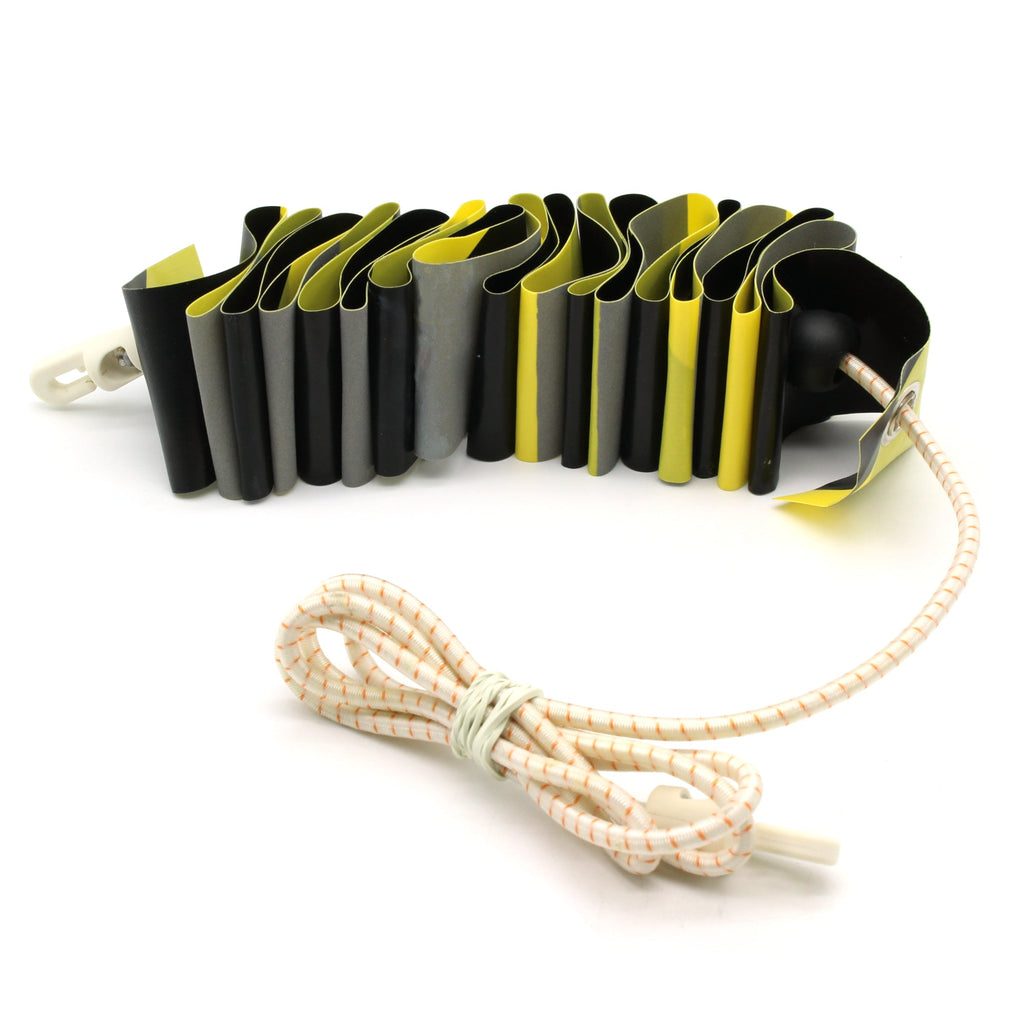 FEATURES: Hi-vis day pattern on one side, reflective night pattern on the other. Elastic allows it to expand and stretch between 1-2 meters in total length. The shock absoring and wind resistant properties make it perfect for any and all environments. Easily fastened to anchor points or each other. Reinforced PVC-based double-sided warning tape.
