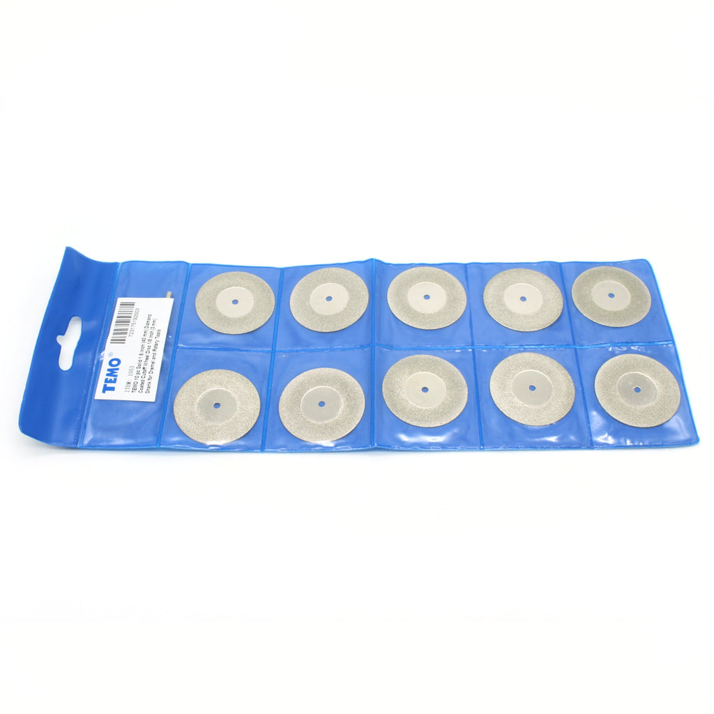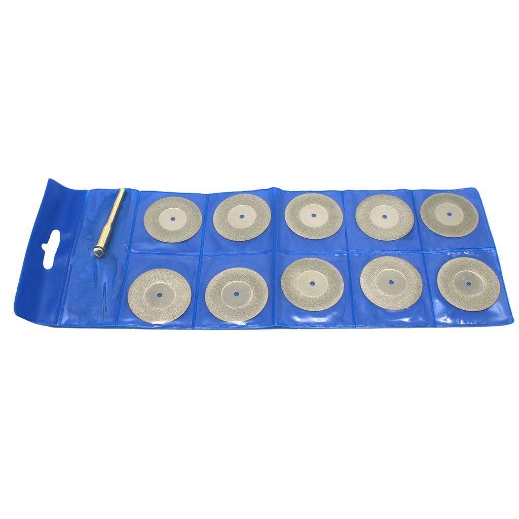 TMAX 10 pc Solid 1.5 Inch 40mm Diamond Coated Cutoff Discs Cut Off Saw Wheel with Mandrel of 1/8 Inch Shank for Dremel and Other Rotary Tools Diamond Coated for Extra Strength and Long Life of Blades. Solid wheel for added durability. Includes a 1/8" 3mm Mandrel for Dremel, Foredom and other Rotary Tools. US-BASED CUSTOMER SERVICE: Available by chat, email, phone, or visit us at our customer service center in La Crosse, WI.