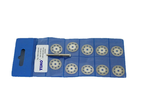 TMAX 10 pc 3/4 Inch 20mm Breath Hole Diamond Coated Cutoff Discs Cut Off Saw Wheel with Mandrel of 1/8 Inch Shank for Dremel and Other Rotary Tools Diamond Coated for Extra Strength and Long Life of Blades. Discs have Breathing Holes for Heat Reduction and removal of debris. Includes a 1/8" 3mm Mandrel for Dremel, Foredom and other Rotary Tools. US-BASED CUSTOMER SERVICE: Available by chat, email, phone, or visit us at our customer service center in La Crosse, WI.