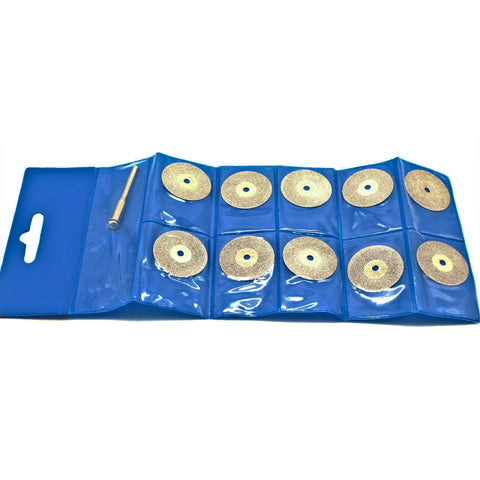 TMAX 10 pc 1 Inch 25mm Solid Diamond Coated Cutoff Discs Cut Off Saw Wheel with Mandrel of 1/8 Inch Shank for Dremel and Other Rotary Tools Diamond Coated for Extra Strength and Long Life of Blades. Solid wheel for added durability. Includes a 1/8" 3mm Mandrel for Dremel, Foredom and other Rotary Tools. US-BASED CUSTOMER SERVICE: Available by chat, email, phone, or visit us at our customer service center in La Crosse, WI.