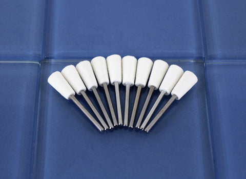 Rotary tool accessories, felt-tipped, made of top quality wool Smooth and refine surfaces by using these felt buffs to polish metal, ceramics and glass. Ideal for smoothing interior surfaces, there are 10 interchangeable pc for the rotary grinding and polishing tool. 10 pc Inverted Cone head: 10mm (3/8") felt diameter, 18mm (11/16") felt length All with 1/8" (3.175mm) Mandrel US-BASED CUSTOMER SERVICE: Available by chat, email, phone, or visit us at our customer service center in La Crosse, WI.