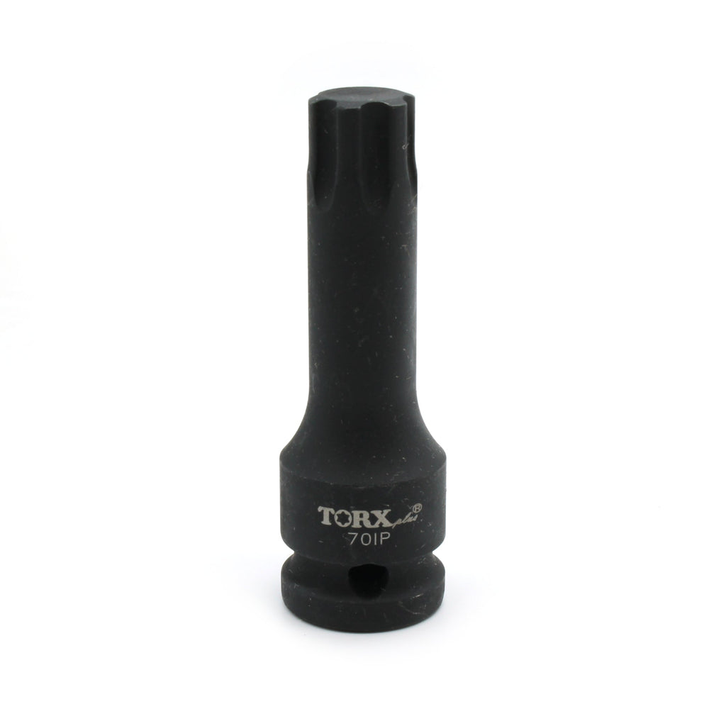 Impact Torx Plus 6 point Socket Bit IP-70 The socket bits are 3-1/8" (80mm) long. 1/2" (12.7mm) Sqaure Drive with drive release holes. Drop forged black chrome moly steel (CR-MO). Industrial grade quality. Suitable for air tools and electric tools. US-BASED CUSTOMER SERVICE: Available by chat, email, phone, or visit us at our customer service center in La Crosse, WI.