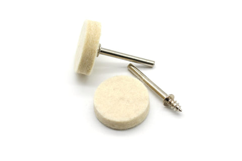 The set includes 100 pc 429 Felt Polishing 1" (25.4mm) (Diameter) x 1/4" (6.35mm)(thick) Wheel with 2 pc 1/8" (3.175mm) shank screw mandrel 401 Rotary tool accessories, felt-tipped, made of top quality wool, for Dremel. Smooth and refine surfaces by using these felt buffs to polish or grind metal, ceramics and glass. Ideal for smoothing interior surfaces. All with 1/8" (3.175mm) Mandrel US-BASED CUSTOMER SERVICE: Available by chat, email, phone, or visit us at our customer service center in La Crosse, WI.