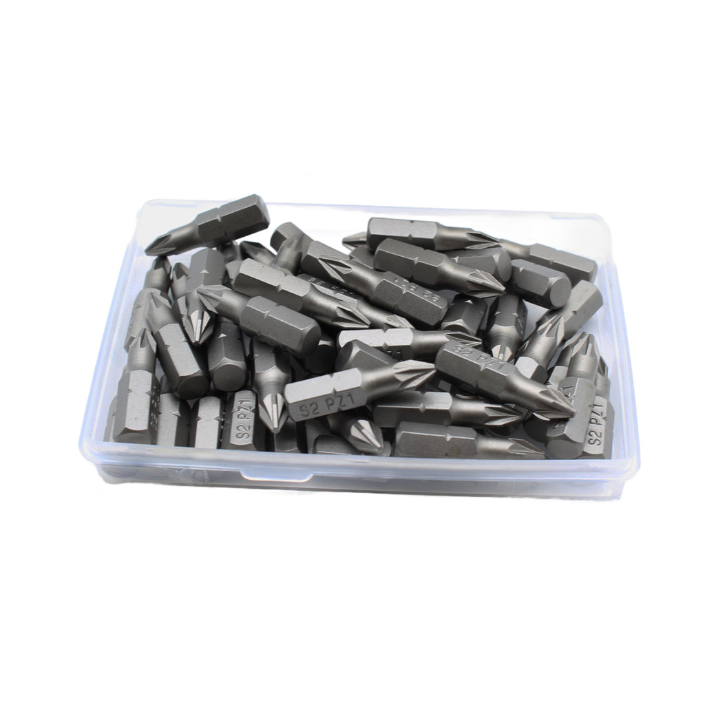 SCREWDRIVER INSERT BITS: 50 pc Pozi #1 (PZ1) Pozidriv Screwdriver Insert Bits in a plastic storage case.