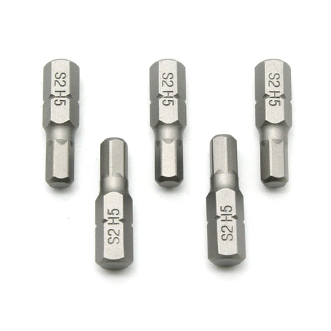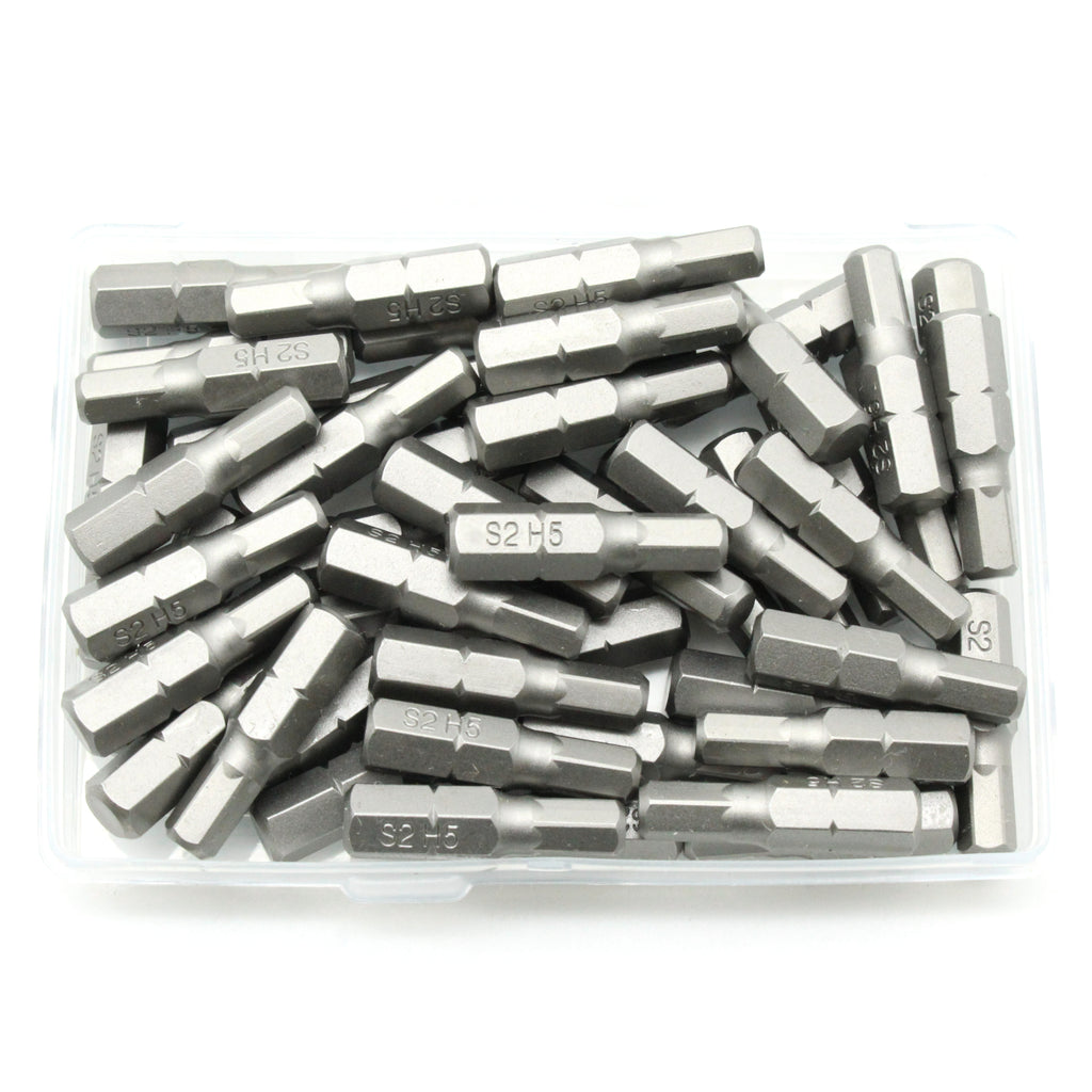 SCREWDRIVER INSERT BITS: 50 pc H-5 Hex 5mm Screwdriver Insert Bits in a plastic storage case.