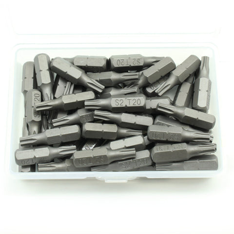 SCREWDRIVER INSERT BITS: 50 pc T-20 Torx 6 Point Screwdriver Insert Bits in a plastic storage case.