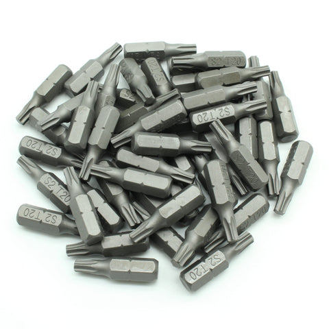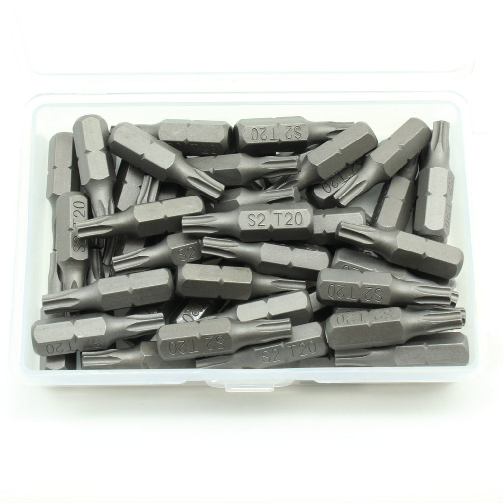 INCLUDED: 50 pc T-20 Torx 6 Point Screwdriver Insert Bits in a plastic storage case.