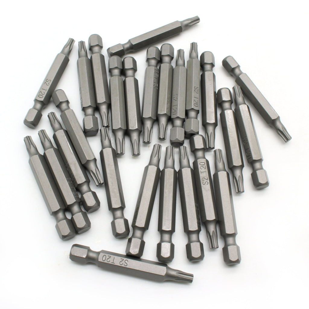 SCREWDRIVER INSERT BITS: 25 pc T-20 Torx 6 Point Screwdriver Insert Bits in a plastic storage case.