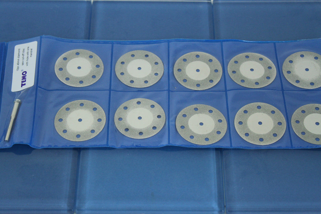 TMAX 10 pc 1.5 Inch 40mm Breath Hole Diamond Coated Cutoff Discs Cut Off Saw Wheel with Mandrel of 1/8 Inch Shank for Dremel and Other Rotary Tools Diamond Coated for Extra Strength and Long Life of Blades. Breathing Holes for Heat Reduction and removal of debris. Includes a 1/8" 3mm Mandrel for Dremel, Foredom and other Rotary Tools. US-BASED CUSTOMER SERVICE: Available by chat, email, phone, or visit us at our customer service center in La Crosse, WI.