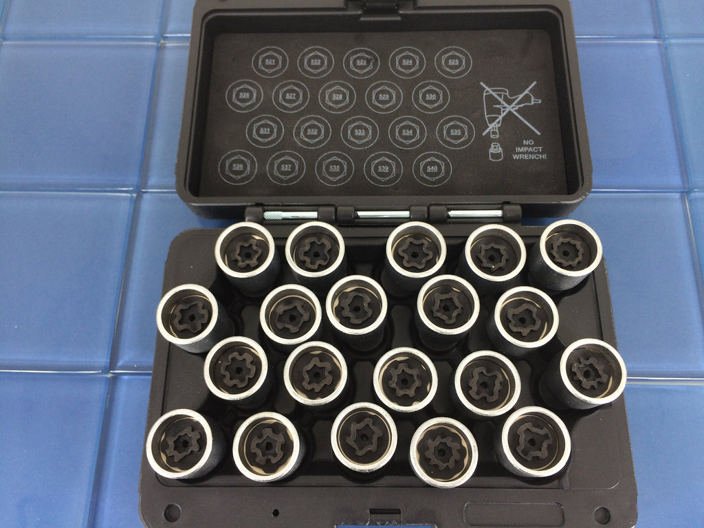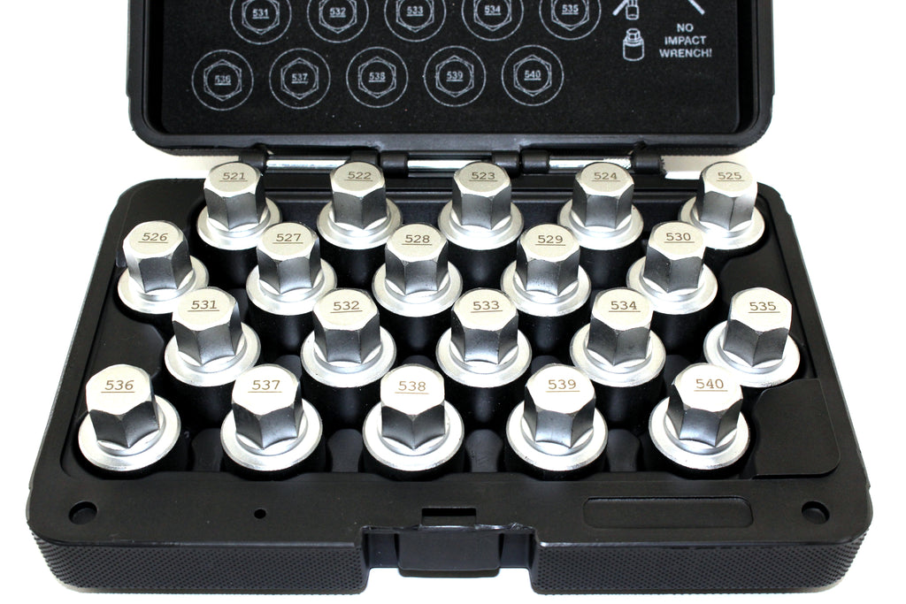 Wheel Nut Removal Socket Set Including 20 PC 17mm socket: #521, #522, #523, #524, #525, #526, #527, #528, #529, #530, #531, #532, #533, #534, #535, #536, #537, #538, #539, #540.