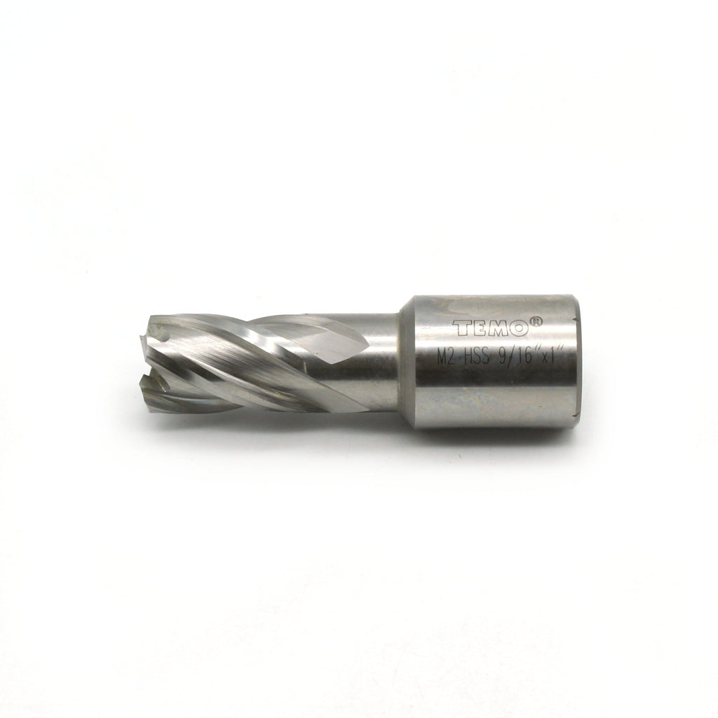 9/16" M2 Annular Cutter, Weldon shank, bright finish Fits all standard drill press. Comes in reusable labeled storage case. Cutters made from high quality high speed M2 steel. Cutting Depth 1" (25.4mm) US-BASED CUSTOMER SERVICE: Available by chat, email, phone, or visit us at our customer service center in La Crosse, WI.