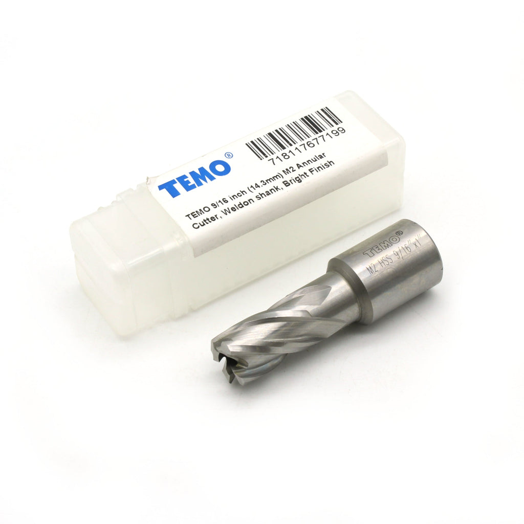 TMAX 9/16 inch (14.3mm) M2 Annular Cutter, Weldon shank, Bright Finish