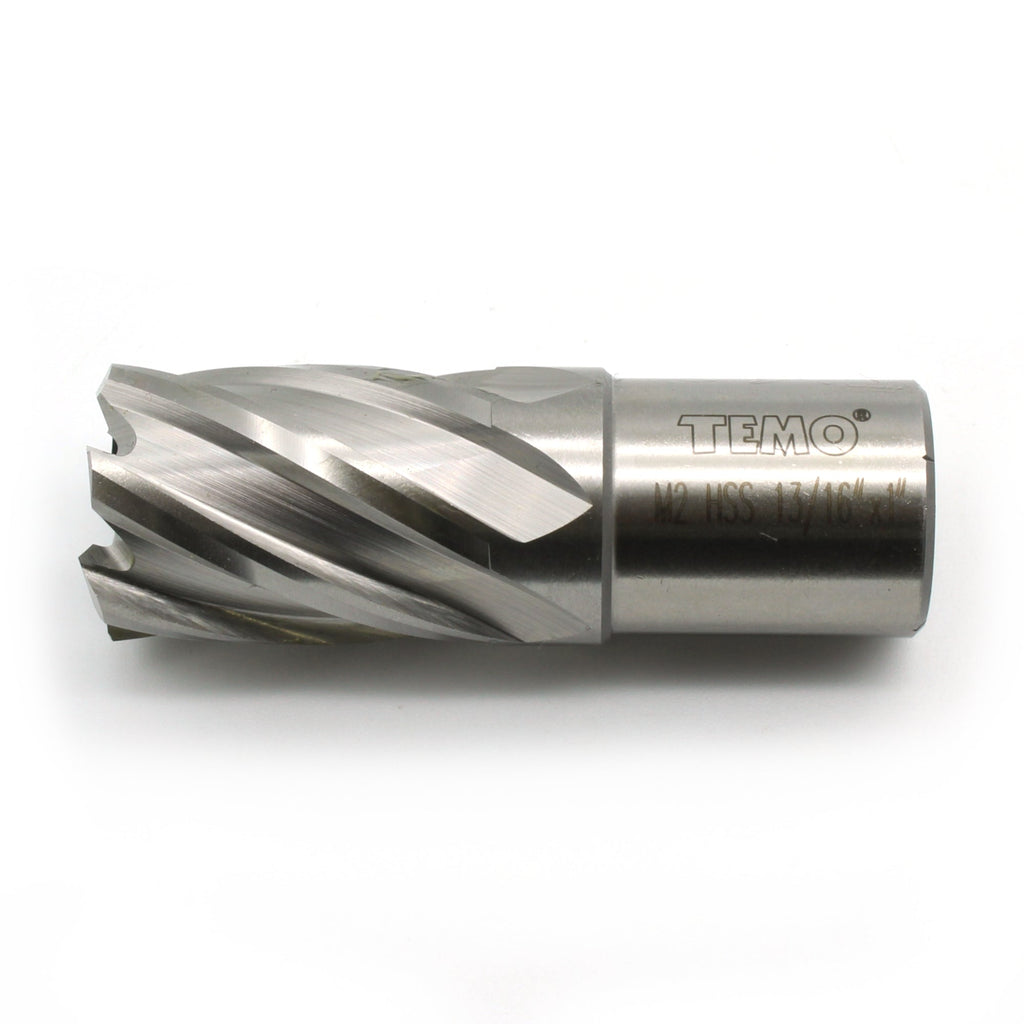13/16" M2 Annular Cutter, Weldon shank, bright finish Fits all standard drill press. Comes in reusable storage case. Cutters made from high quality high speed M2 steel. Cutting Depth 1" (25.4mm) US-BASED CUSTOMER SERVICE: Available by chat, email, phone, or visit us at our customer service center in La Crosse, WI.