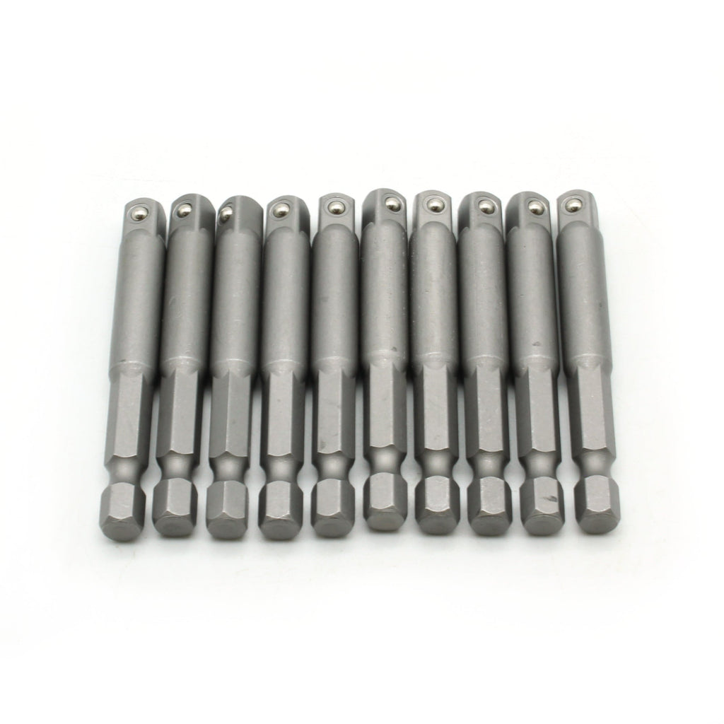 10pc 1/4" Power Socket Extension adapter Bit Set for Impact Driver Chrome Vanadium steel for heavy duty impact drill/driver use 1/4" head to 1/4" shank socket extender Usable in any 1/4" quick change/quick chuck system Spring loaded stainless steel ball to hold socket in place US-BASED CUSTOMER SERVICE: Available by chat, email, phone, or visit us at our customer service center in La Crosse, WI.