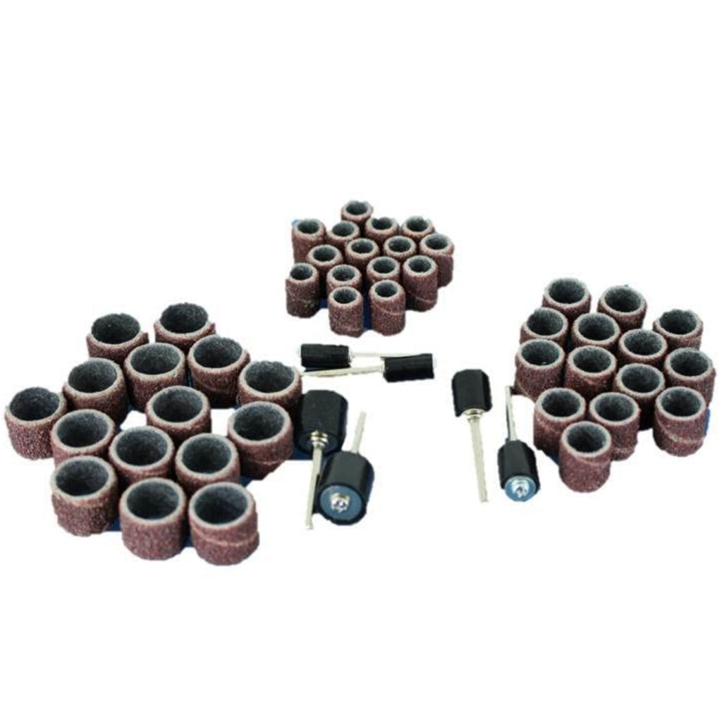 Set includes: 1/4" sand drum x 15, 3/8" sand drum x 15, 1/2" sand drum x 15. Set also includes: 2 mandrels per sand drum size (6 total). 1/8" (3.175mm) shank size for Dremel and other Rotary Tools. The sand drum diameter is the inner diameter excluding the sand paper thickness.