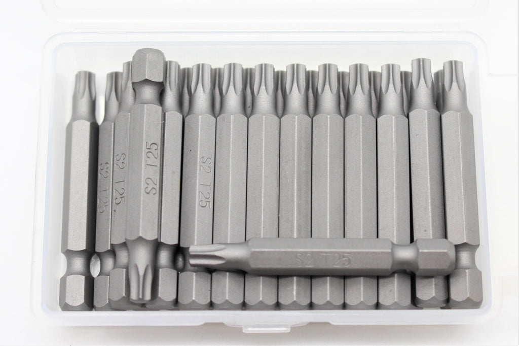 SIZE: All bits are 2" (50.8mm) long with a 1/4" (6.35mm) hex shank and quick release slot.