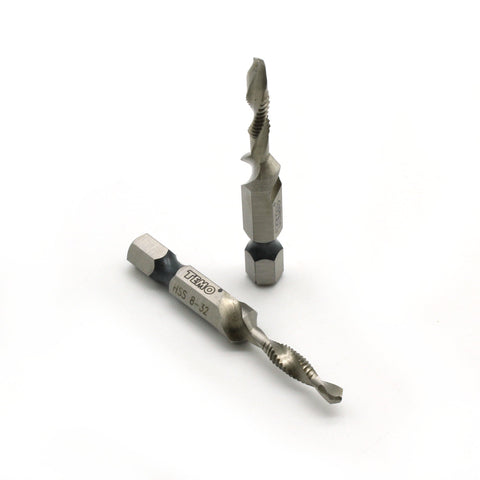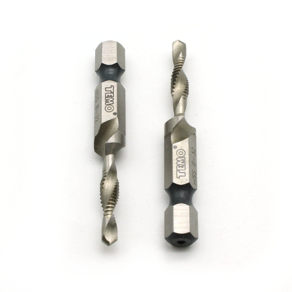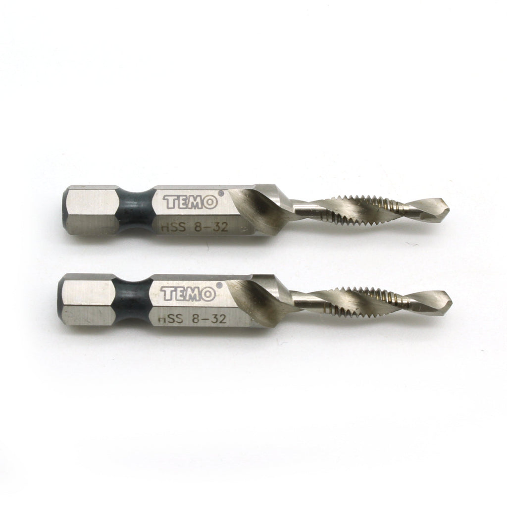 2 pc 8-32 Combination Drill and Tap Multi Use Deburr Countersink Hex Bit