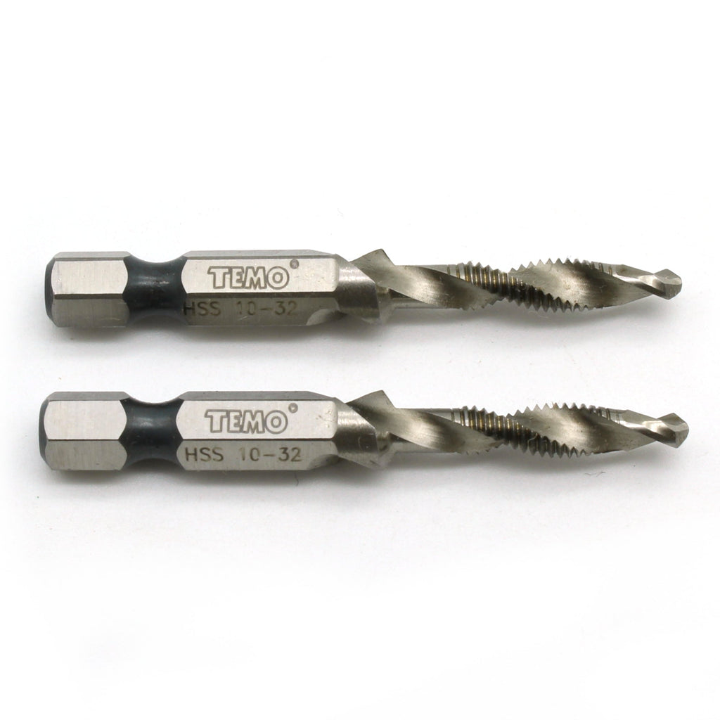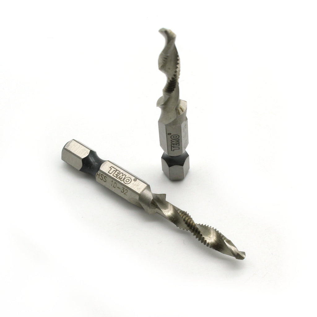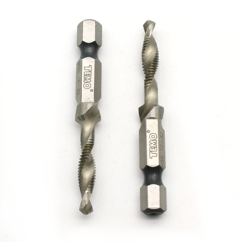 2 pc 10-32 Combination Drill and Tap Multi Use Deburr Countersink Hex Bit