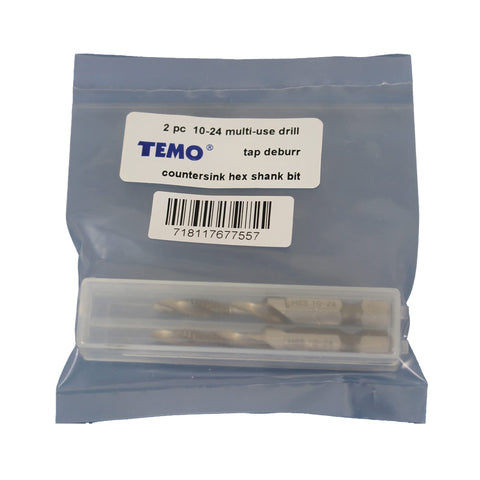 2 pc 10-24 Combination Drill and Tap Multi Use Deburr Countersink Hex Bit
