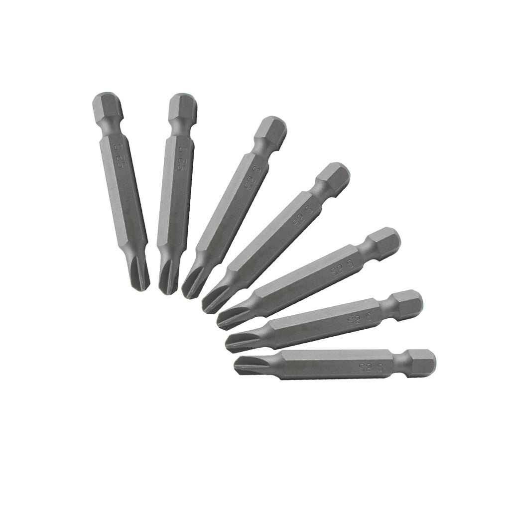 SIZE: All bits are 2" (50.8mm) long with a 1/4" (6.35mm) hex shank and quick release slot.