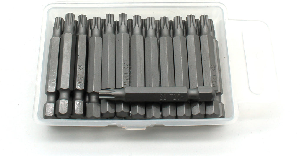 INCLUDED: 25 pc T25H Tamper Proof Security Torx Screwdriver Insert Bits in a plastic storage case.