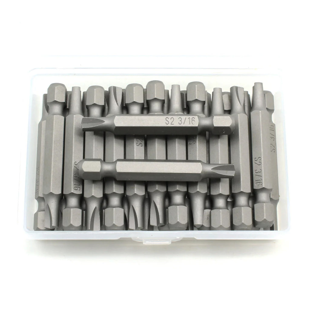 SIZE: All bits are 2" (50.8mm) long with a 1/4" (6.35mm) hex shank and quick release slot.