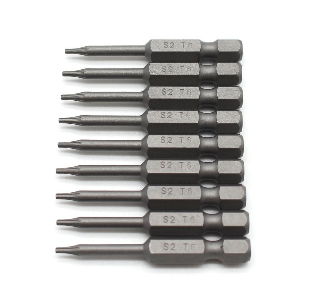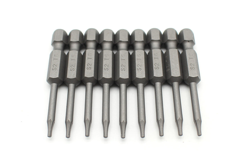 TMAX 10 Piece T6 Torx Star 6 Point Reduced Round Shaft Screwdriver Insert Bits Hex Shank Made of S2 steel for maximum durability. Bits are impact ready. Suitable for both hand tool and electric tool Bits come in plastic bag These bits have a thin, round shaft for working in tight spaces US-BASED CUSTOMER SERVICE: Available by chat, email, phone, or visit us at our customer service center in La Crosse, WI.