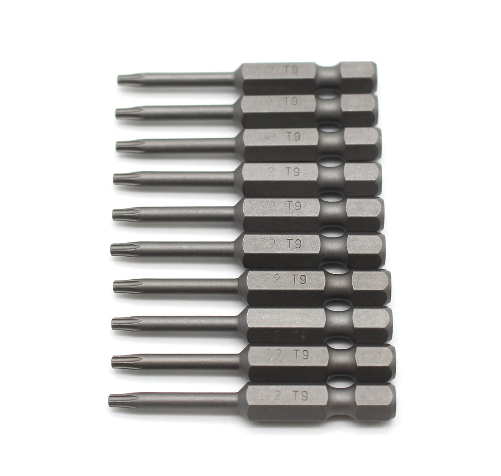 TMAX 10 Piece T9 Torx Star 6 Point Reduced Round Shaft Screwdriver Insert Bits Hex Shank Made of S2 steel for maximum durability. Bits are impact ready. Suitable for both hand tool and electric tool Bits come in plastic bag These bits have a thin, round shaft for working in tight spaces US-BASED CUSTOMER SERVICE: Available by chat, email, phone, or visit us at our customer service center in La Crosse, WI.