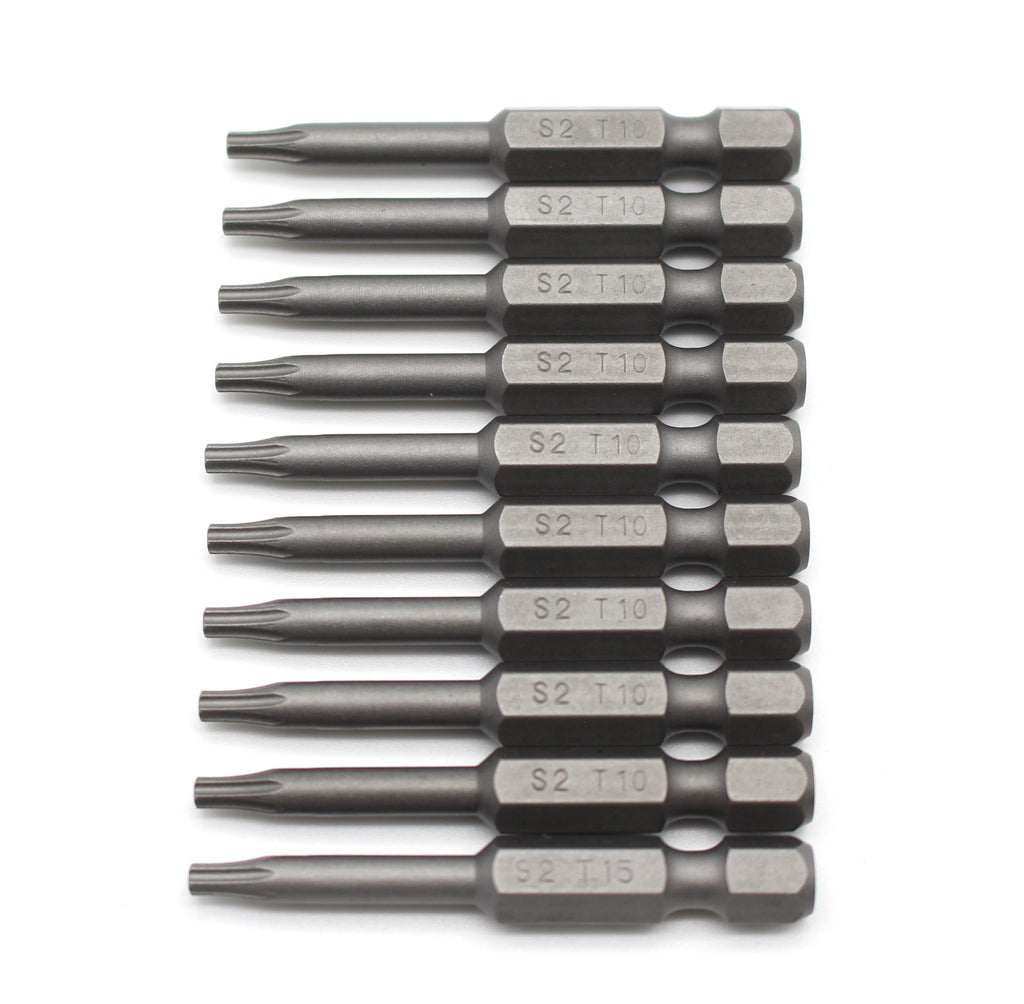 TMAX 10 Piece T10 Torx Star 6 Point Reduced Round Shaft Screwdriver Insert Bits Hex Shank Made of S2 steel for maximum durability. Bits are impact ready. Suitable for both hand tool and electric tool Bits come in plastic bag These bits have a thin, round shaft for working in tight spaces US-BASED CUSTOMER SERVICE: Available by chat, email, phone, or visit us at our customer service center in La Crosse, WI.