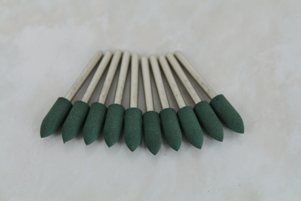 10 pc of 120 grit RUBBER polishing burrs for all your polishing needs. The heads have a bullet shape with diameter of 6 mm. All 3 mm (1/8 inch) shanks. Compatible with Dremel and other rotary tools. US-BASED CUSTOMER SERVICE: Available by chat, email, phone, or visit us at our customer service center in La Crosse, WI.