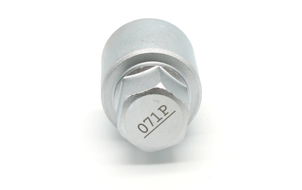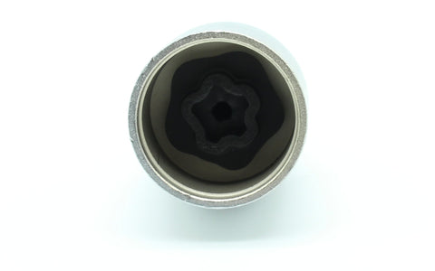 One piece anti-theft lugnut key for selected Volvo vehicles. Interior black surface is made with Manganese Phosphate Coating.