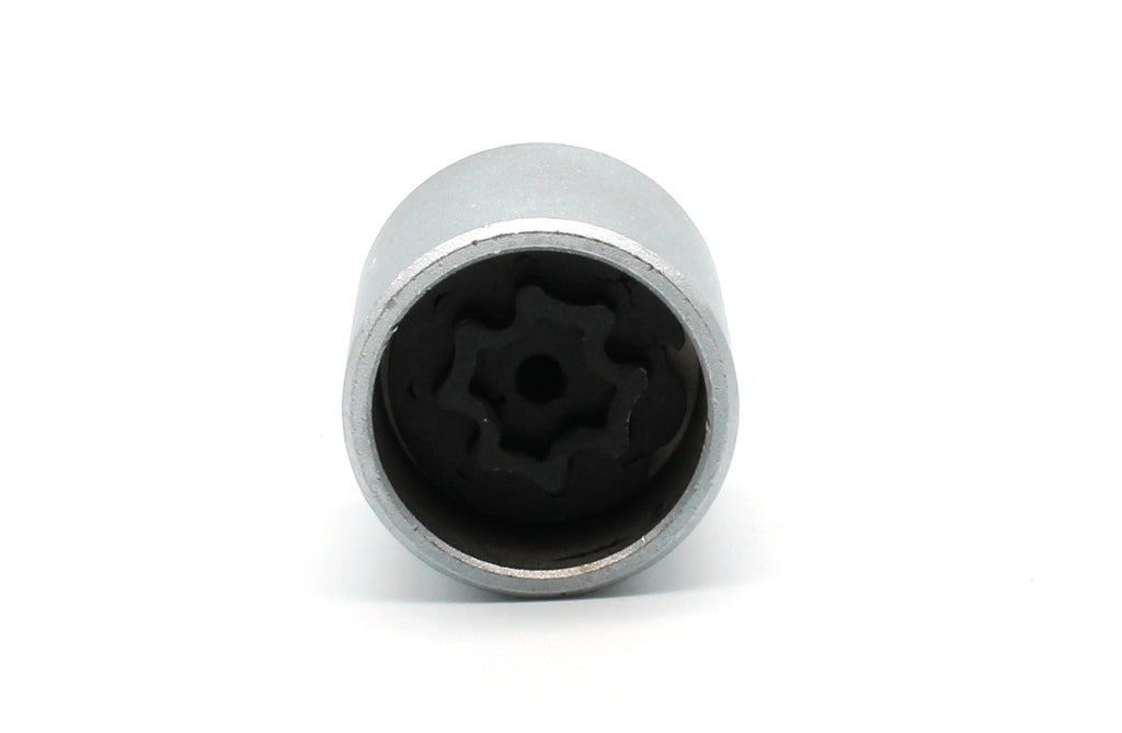 One piece anti-theft lugnut key for selected Mercedes Benz vehicles. Interior black surface is made with Manganese Phosphate Coating.