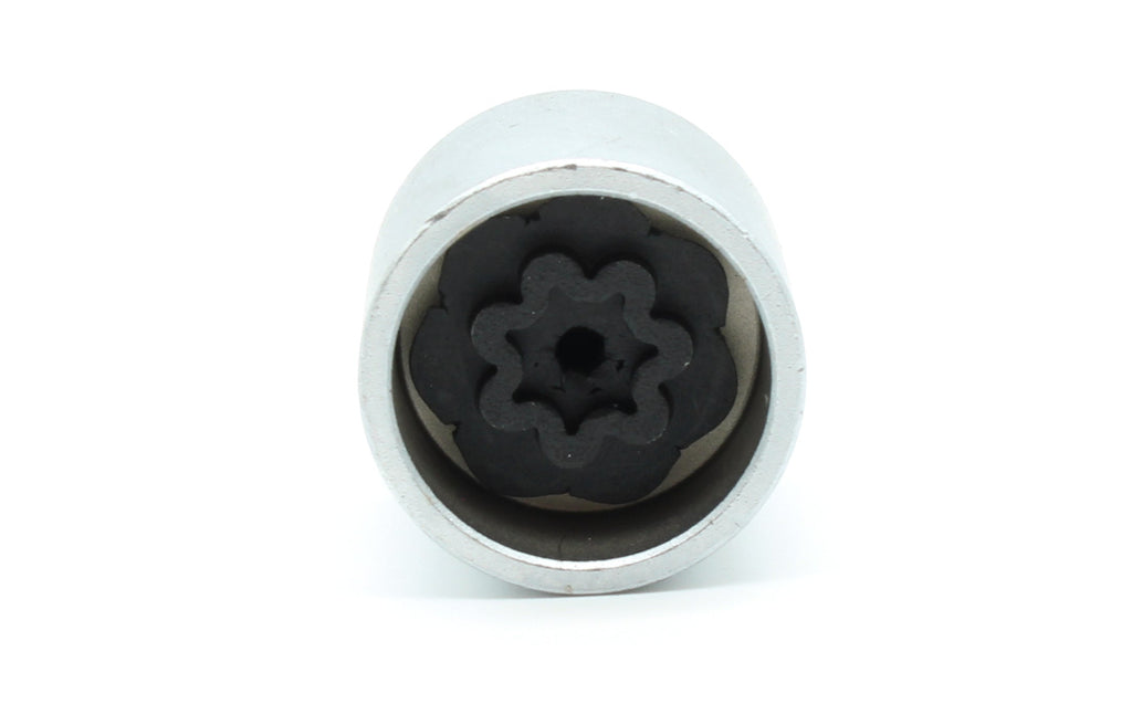 One piece anti-theft lugnut key for selected Mercedes Benz vehicles. Interior black surface is made with Manganese Phosphate Coating.