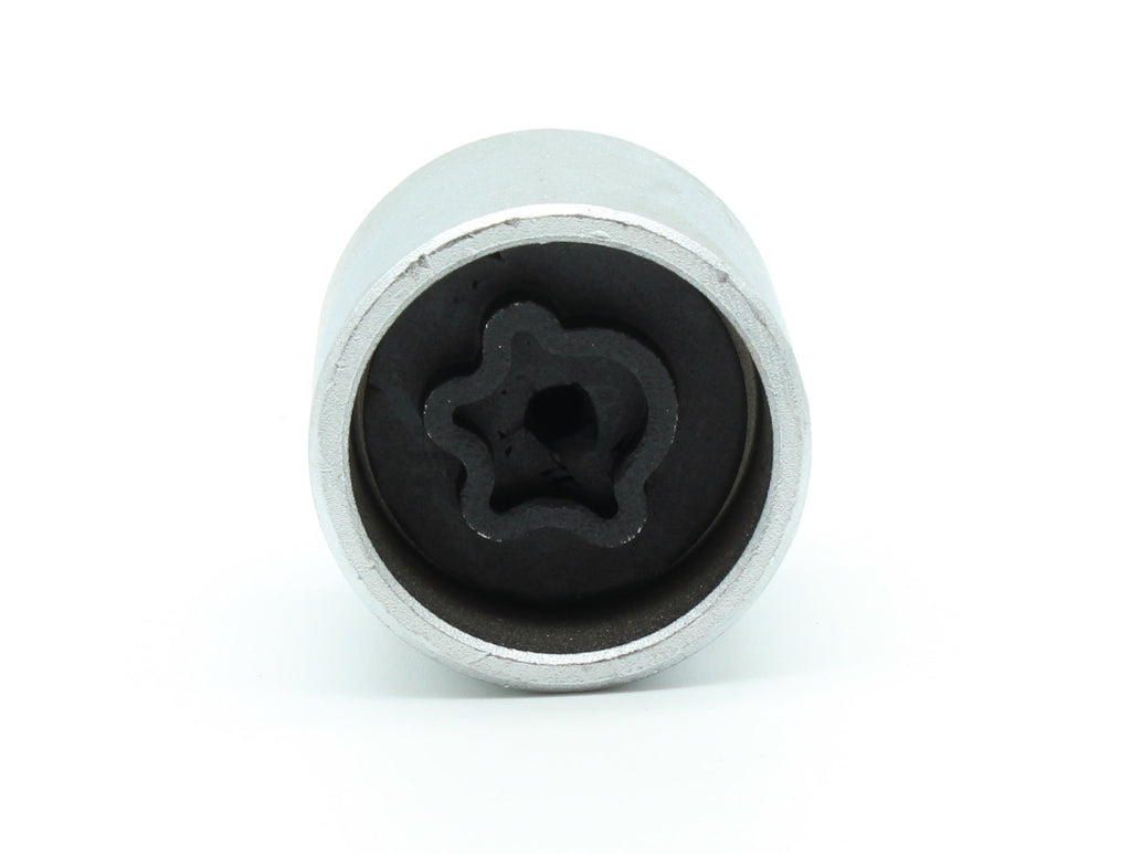 One piece anti-theft lugnut key for selected Mercedes Benz vehicles. Interior black surface is made with Manganese Phosphate Coating.