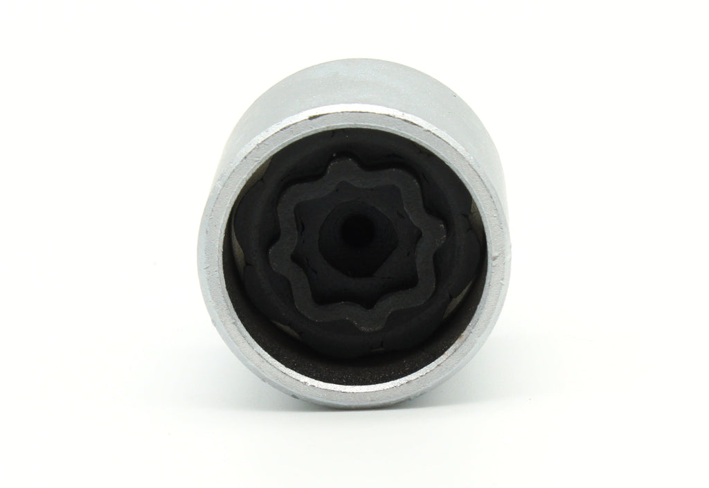 One piece anti-theft lugnut key for selected Mercedes Benz vehicles. Interior black surface is made with Manganese Phosphate Coating.
