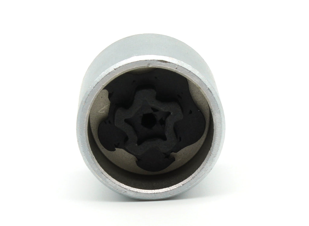 One piece anti-theft lugnut key for selected Mercedes Benz vehicles. Interior black surface is made with Manganese Phosphate Coating.