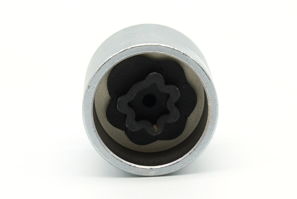 One piece anti-theft lugnut key for selected Mercedes Benz vehicles. Interior black surface is made with Manganese Phosphate Coating.
