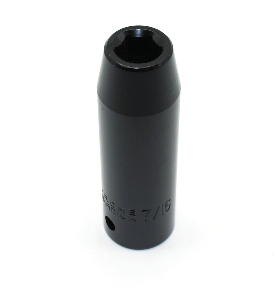7/16" Inch Impact Socket Made of chrome vanadium with protective finish for heavy duty impact use Deep socket, each is 3" long 1/2" Inch drive Newly available as individual pc from our 3/8 Inch to 1-1/4 Inch socket set US-BASED CUSTOMER SERVICE: Available by chat, email, phone, or visit us at our customer service center in La Crosse, WI.